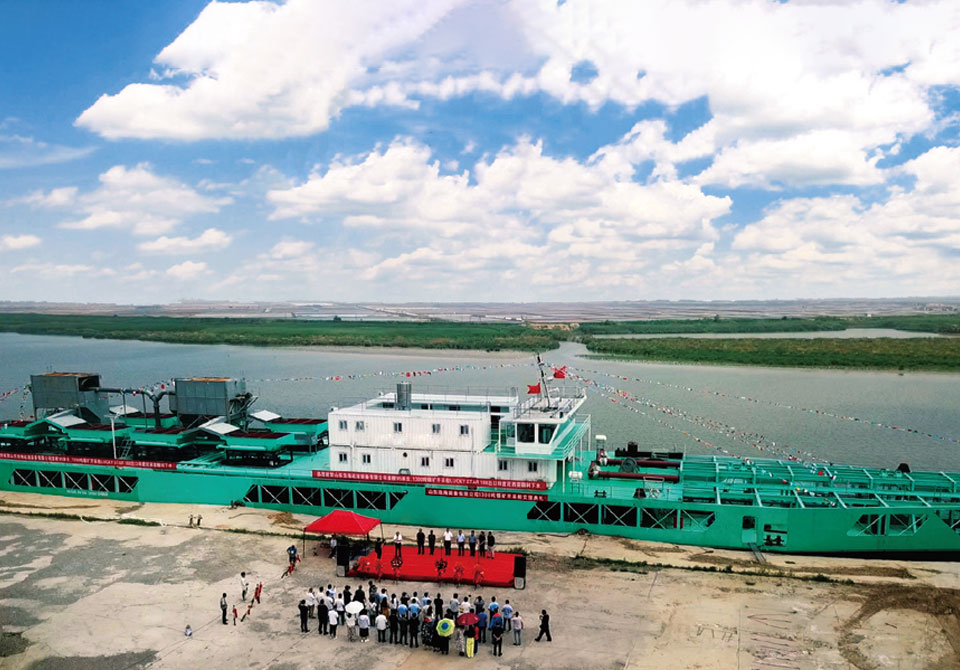 錫礦開采船是應用于海洋上的錫礦從絞刀頭開 采原料、大型防水電機泵通過管道輸送、篩分 水洗、跳汰機粗精選等流程,實現(xiàn)錫礦整套作業(yè)。 該錫礦船相關技術獲得產權局專利,通過印尼 船級社船舶檢驗并獲得采礦船獎項。 該船具有可抗風浪適用于海洋和大型庫區(qū)作 業(yè)??傃b機功率 2800 千瓦,型長 95 米,型寬 17.5 米,挖深 50 米,可實現(xiàn)自航,是海洋錫礦、 銅礦等有色金屬開采的理想產品。