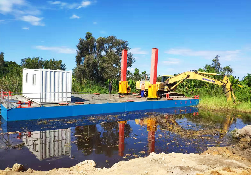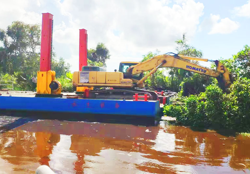 挖機(jī)平臺(tái)用于雜亂的河道,復(fù)雜的水域清淤,適應(yīng)性強(qiáng),廣泛用于清淤或打樁等作業(yè)。采用 CCS 船用鋼板和 CCS 船用涂料,船體堅(jiān)固耐用,船舶設(shè)計(jì)研究院圖紙分體式結(jié)構(gòu),更方便快捷的運(yùn)輸和組裝建立良好的工作和生活區(qū)域,適合長(zhǎng)期作業(yè)和生活。
