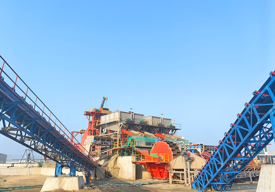 這套設(shè)備主要用于將挖泥船排管處排出的泥沙進(jìn)行清洗,緩沖箱,輸送及布料。此套設(shè)備含4條洗沙線,每條洗沙線分別有,鏈斗提沙機(jī),滾筒篩分機(jī),鐵粉提取,鐵粉清洗,除雜機(jī),淘金裝置,水輪洗沙機(jī),振動(dòng)脫水篩及布料輸送帶。
