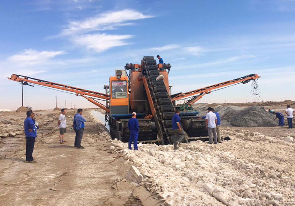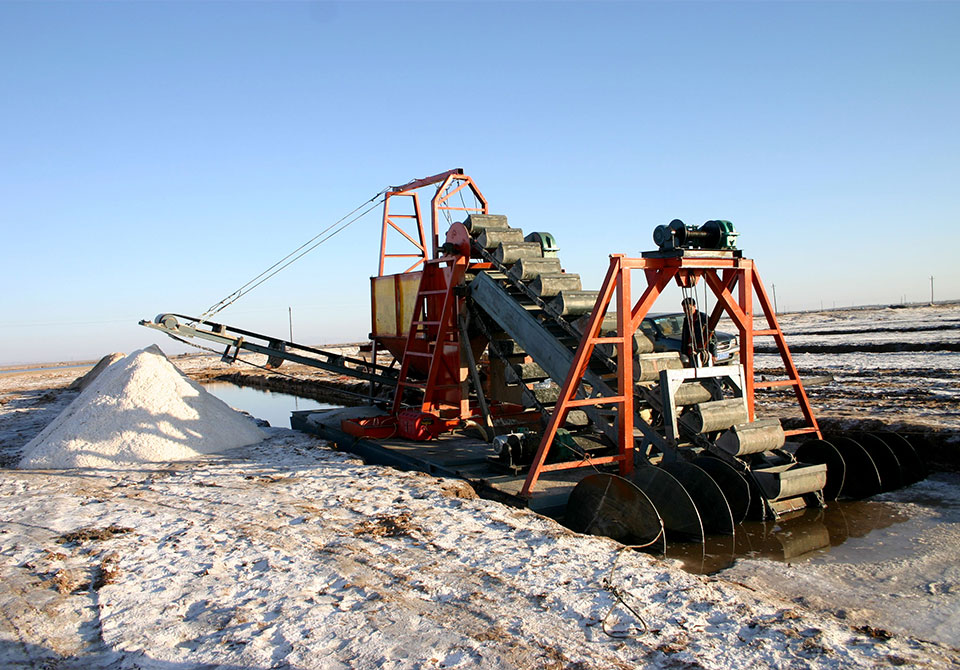 我們根據(jù)實(shí)際情況研究大量資料研制出三代不同的鹽礦開(kāi)采船;新一代挖鹽船在水下及挖掘、開(kāi)采、清洗于一體的鹽礦開(kāi)采機(jī)械,效率值達(dá) 150~ 250T/h。為內(nèi)蒙古吉蘭泰研制的鹽礦開(kāi)采船的應(yīng)用,為客商節(jié)省了大量勞動(dòng)力,明顯的提升了生產(chǎn)效率。